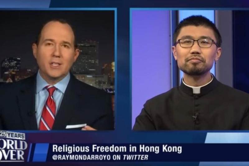 【時代論壇訊】位於美國的天主教電視台永恆聖言電視網(Eternal Word Television Network, EWTN)於四月廿二日的節目The World Over with Raymond Arroyo中,訪問了前任美國國際宗教自由委員妮娜莎兒(Nina Shea)以及現於美國天主教大學攻讀教會法律碩士的天主教香港教區司鐸胡允信神父,了解現時中國和香港的宗教自由所受到的威脅,並特別關心陳日君樞機以及在獄中的天主教徒黎智英。胡允信是在《港區國安法》實施之後,少有實名公開接受海外媒體採訪評論香港宗教自由情況的天主教香港教區司鐸。