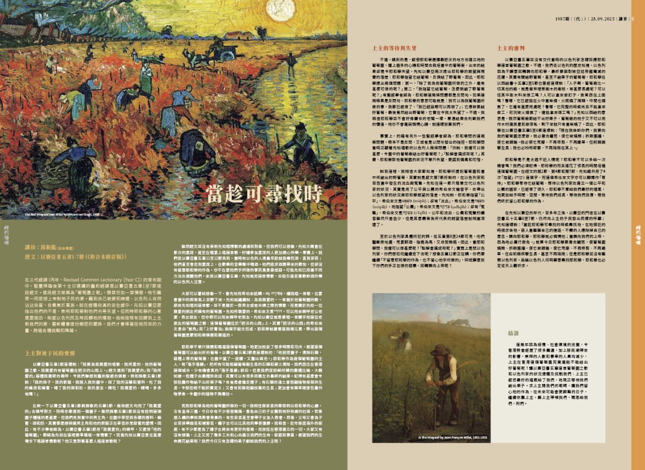晚上7時30分至9時30分 「再思聖經末世論:從先知書論耶和華的日子」講座