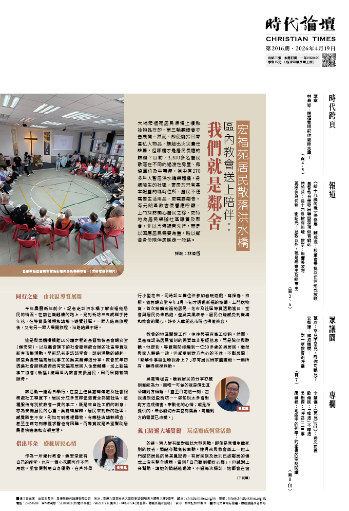 上午10時30至中午12時30分 余德淳「宏福苑災後心靈重建──如何面對災難與哀傷者同行」講座