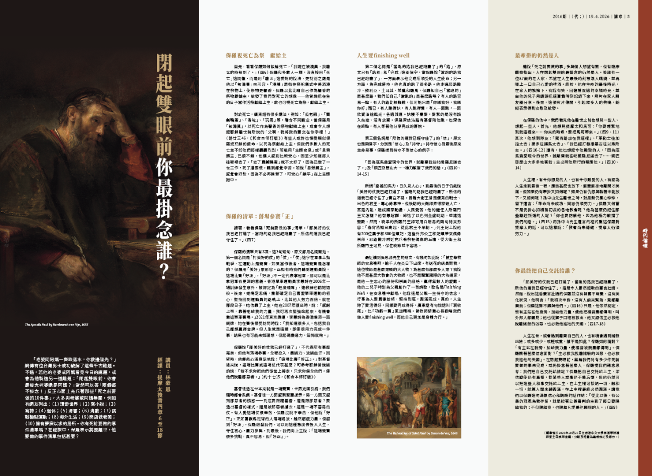 下午2時30分至5時30分 「在我們說再見那天……之前」基督教生死教育座談會