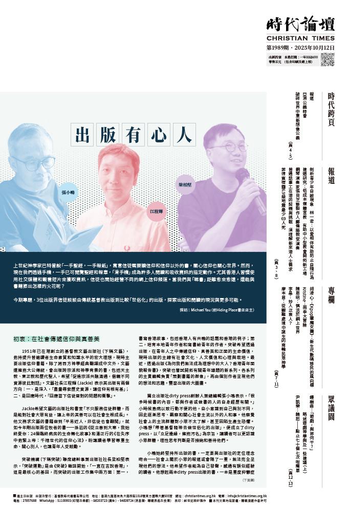 上午9時30分 「活在間閾中——教會在變遷中的身分與調適」教牧研討會及公開講座